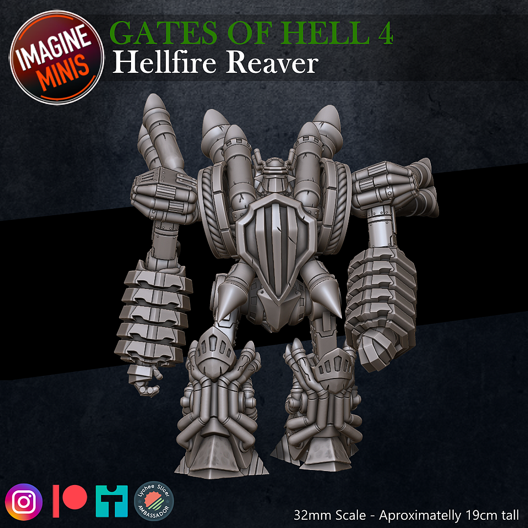 Gates of Hell is a theme chosen by my Patreon Community. Hellfire Reaver is a large 32mm scale miniature; it's a massive construct steam golem powered by infernal powers. When fully assembled, it can reach approximately 19cm tall.