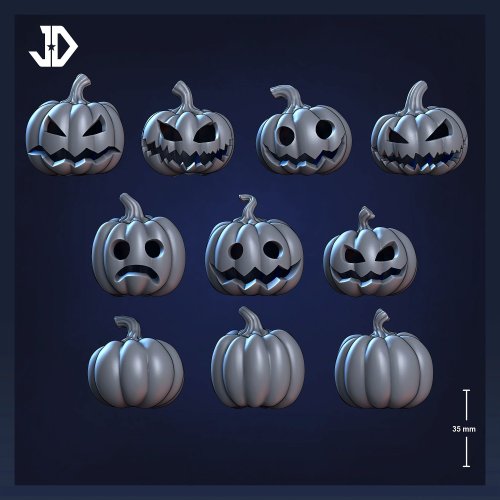 ️7 - Small pumpkins with faces (approximately 35 mm) ️3 - Faceless pumpkins. (approximately 35mm)