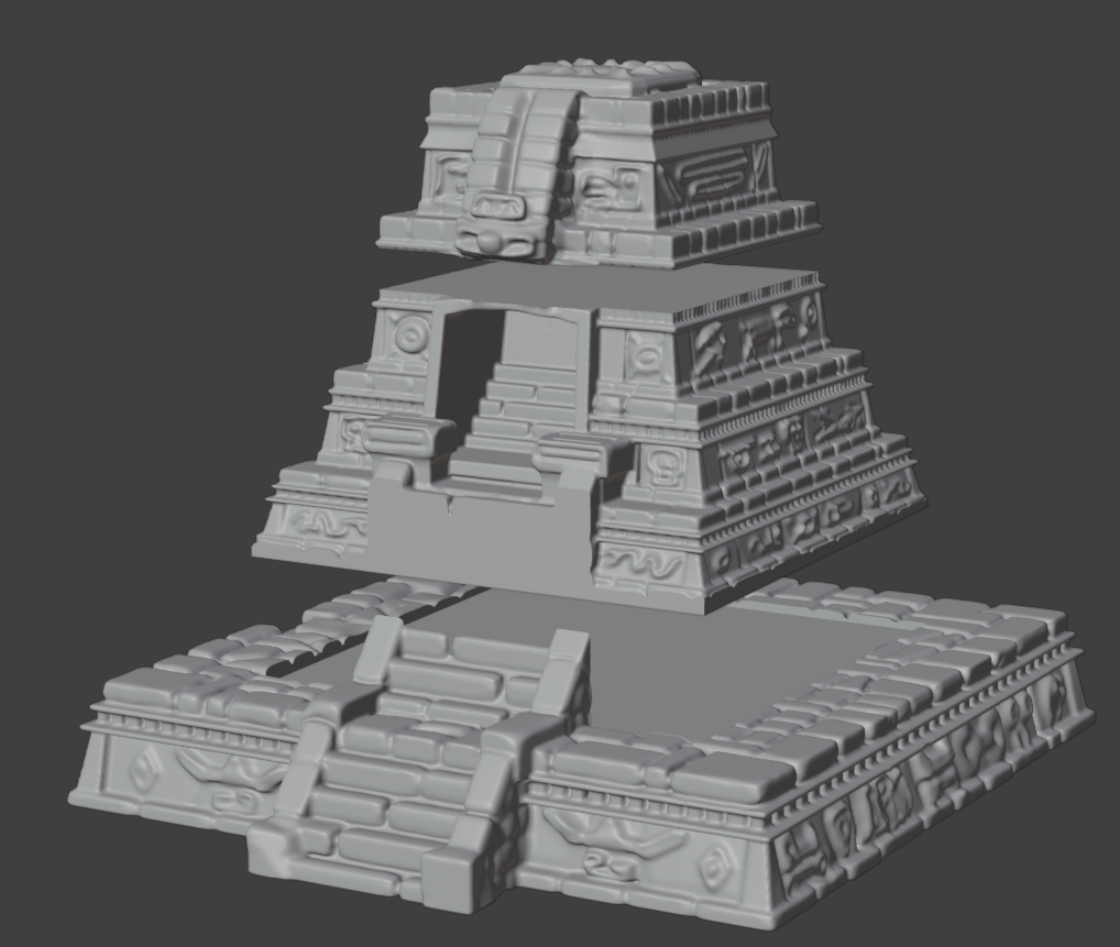 Inspired by mystical jungle cultures and celestial temple architecture, each structure features detailed stone carvings, layered steps, and glyph engravings — perfect for representing lost cities, jungle fortresses, or ancient ruins reclaimed by nature.