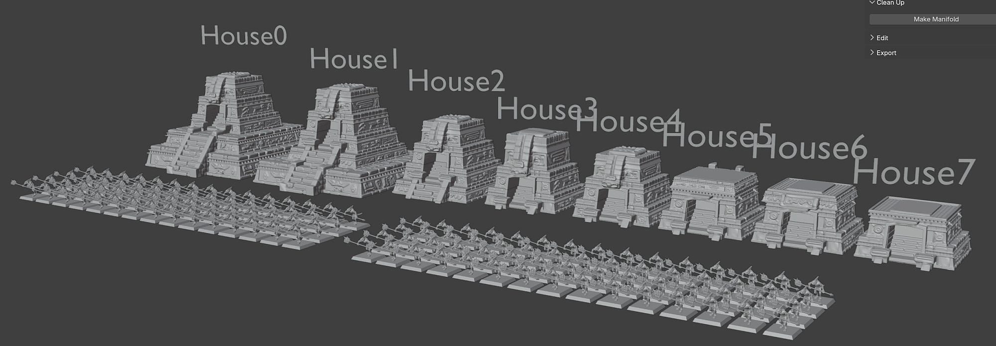 --8 detailed support free temples and houses models with different sizes (House0 → House7) Scaled for 28–32 mm tabletop games,