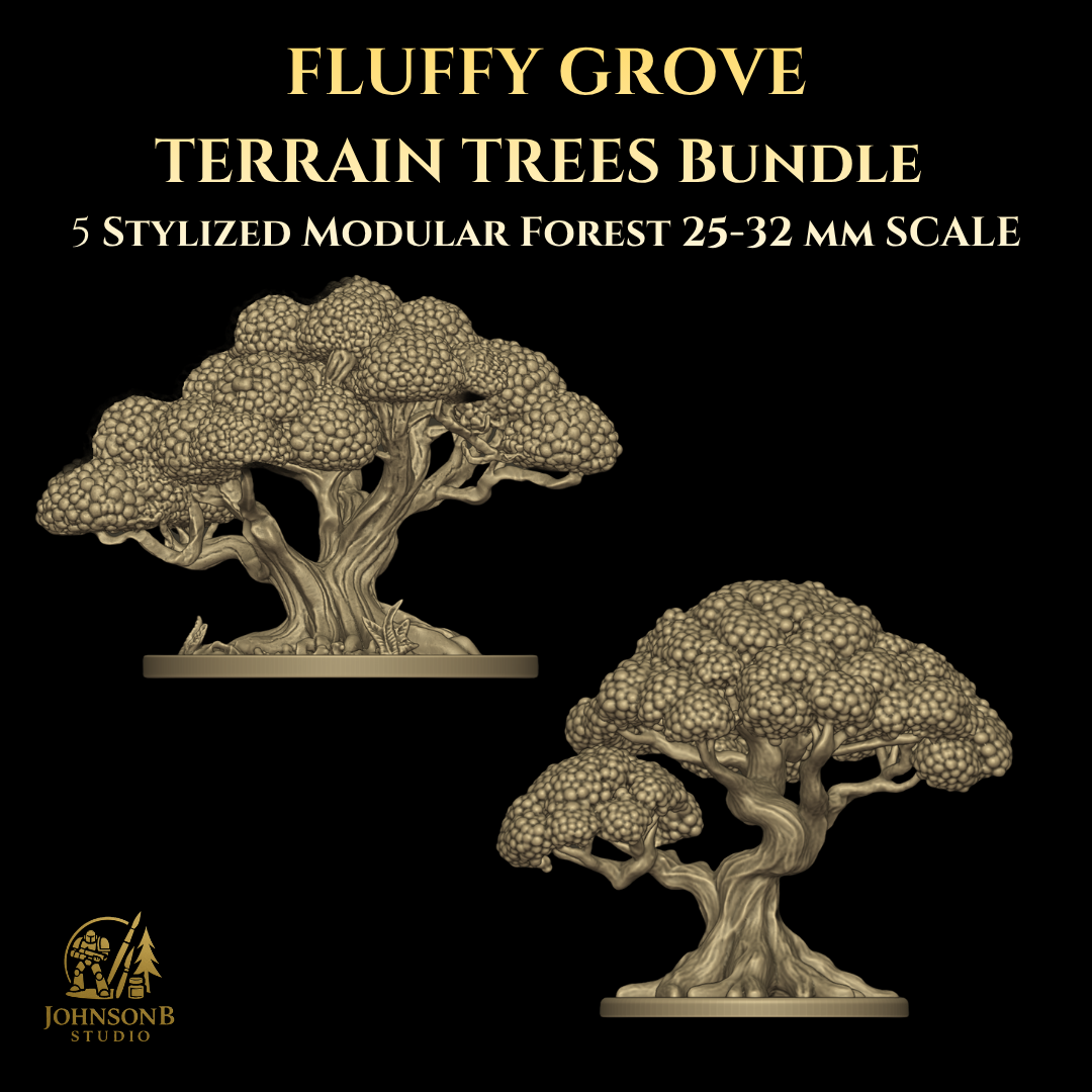 Bring life to your tabletop with the Fluffy Grove Terrain Trees, a set of stylized, modular forest pieces crafted for 28–32 mm scale worlds. Perfect for fantasy, RPG, and wargaming terrain, these trees blend organic flow with sculpted elegance — ideal for settings from enchanted groves to ancient ruins.