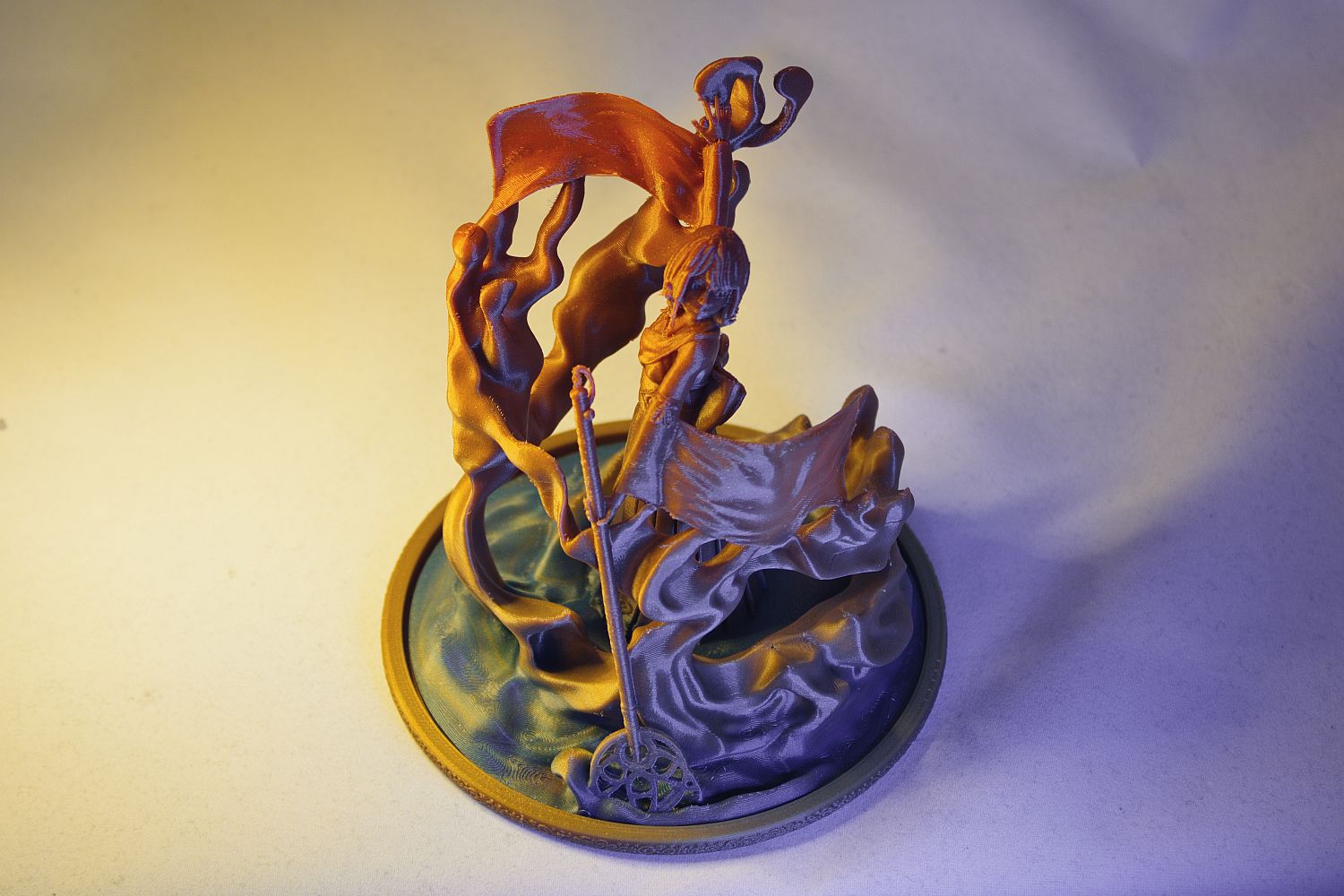 Yuna performing the sending, as seen in the Final Fantasy X. I chose to use the water as the supports for her, making the print otherwise fully support free, for both FDM and resin printers.