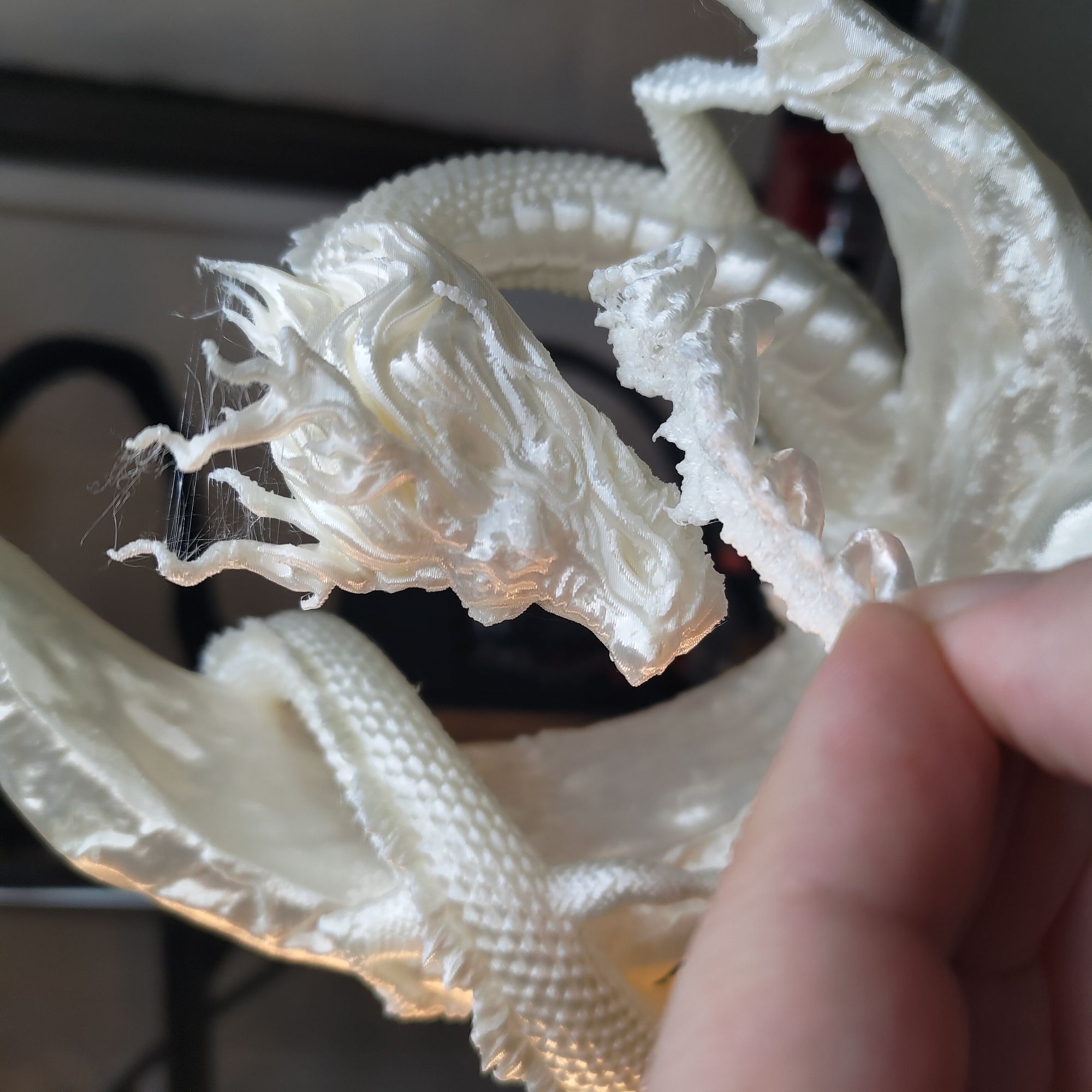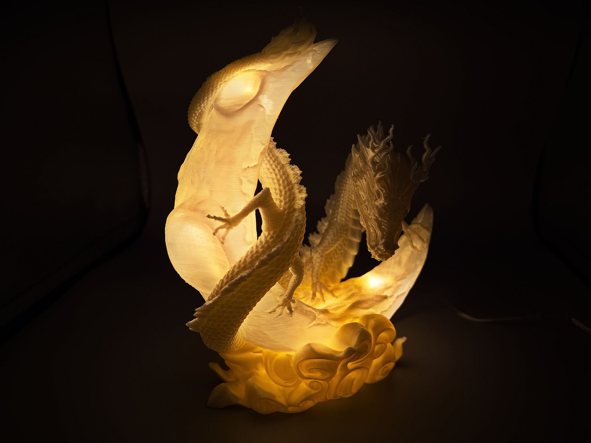This is a mashup of my old hollow crescent moon model and the new Azure Cloud Wyrm, to function as a lamp/nightlight with a simple copper led wire (fairy leds). The moon part is modeled to print hollow while the rest is solid.
