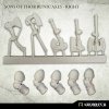 This set contains 5 high quality resin Sons of Thor Runic Axes with 5 corresponding right arms.