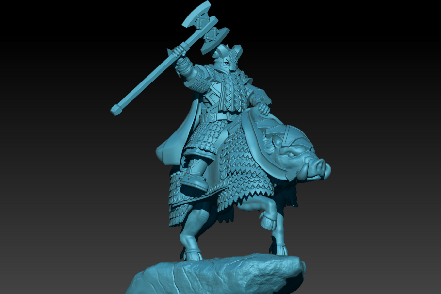 Khuznain Stonehand - Dwarf King on foot and mounted on goat and boar