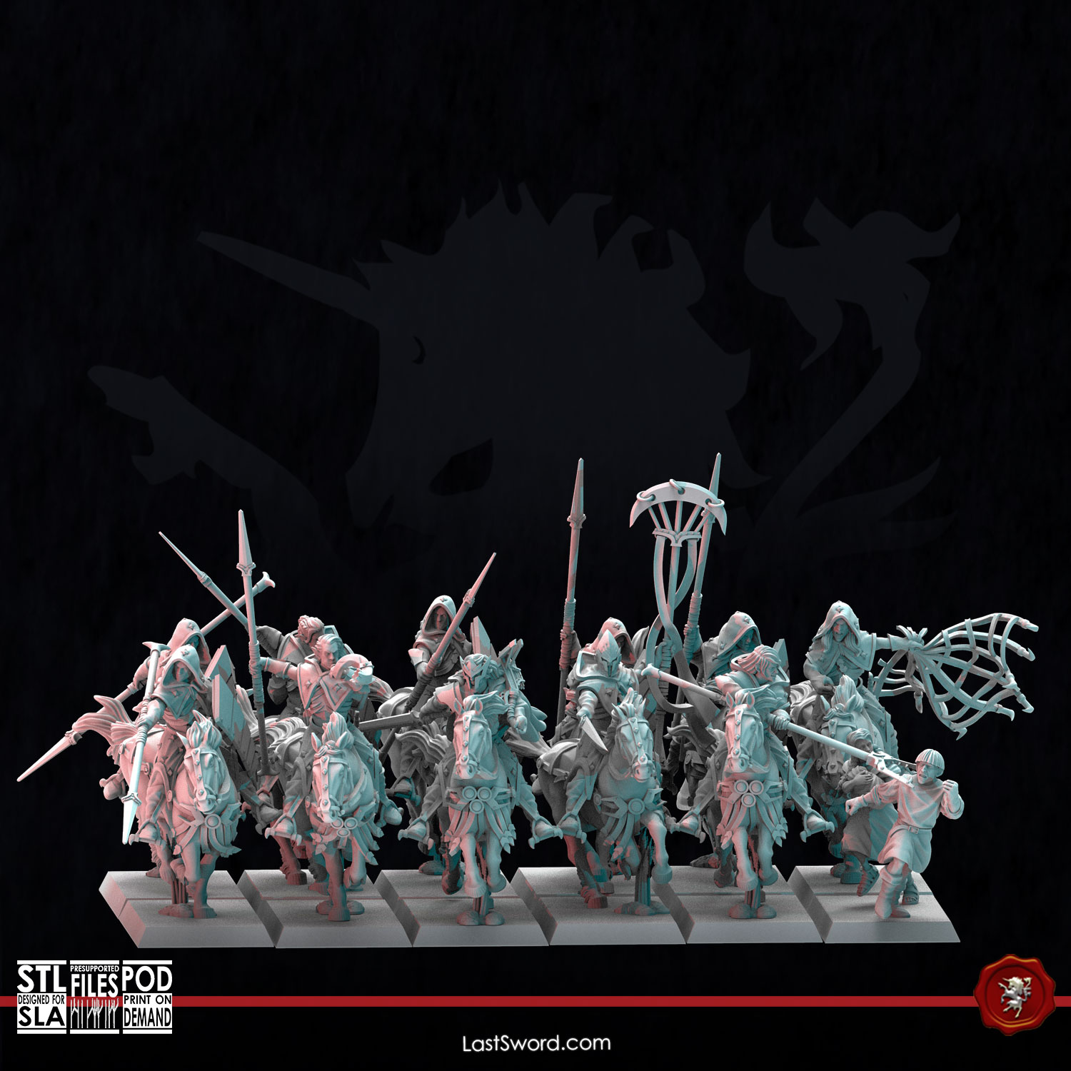 The Shadow Riders stand as the formidable cavalry of the dark elves, expertly equipped to wield a vast array of offensive and defensive weapons, flawlessly executing myriad missions across the war-torn fields of battle. They are masters of every weapon in their expansive arsenal, serving variously as projectile troops with longbows or repeating crossbows; as thundering shock cavalry wielding lances and shields; or as relentless melee warriors armed with swords and shields. This adaptability allows them to deftly navigate the tactical complexities of war, consistently securing the admiration and respect of their generals. Like their dark brethren, they harbor an insatiable thirst for capturing slaves in their brutal raids. Embodied within them are the archetypes of raiders, enslavers, and merciless devastators—the elite of the dark forces—whose singular purpose is to spread suffering and anguish among their foes, for in such dark acts do they find their cruel sustenance.