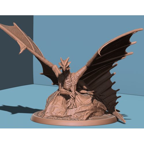 Capture the mystical charm of fantasy with our Adult Copper Dragon 3D model, especially designed for avid miniature collectors and 3D modeling enthusiasts. The model perfectly depicts the short faces of Copper Dragons, complete with characteristic backward pointing cheek ridges and frills present on the lower jaw's back. The horns, starting as smooth brow plates, extend backward in segments, giving the dragon a thoughtful look. They also include downward-growing layers of triangular blades attached to their chins, becoming more numerous as the dragon ages.