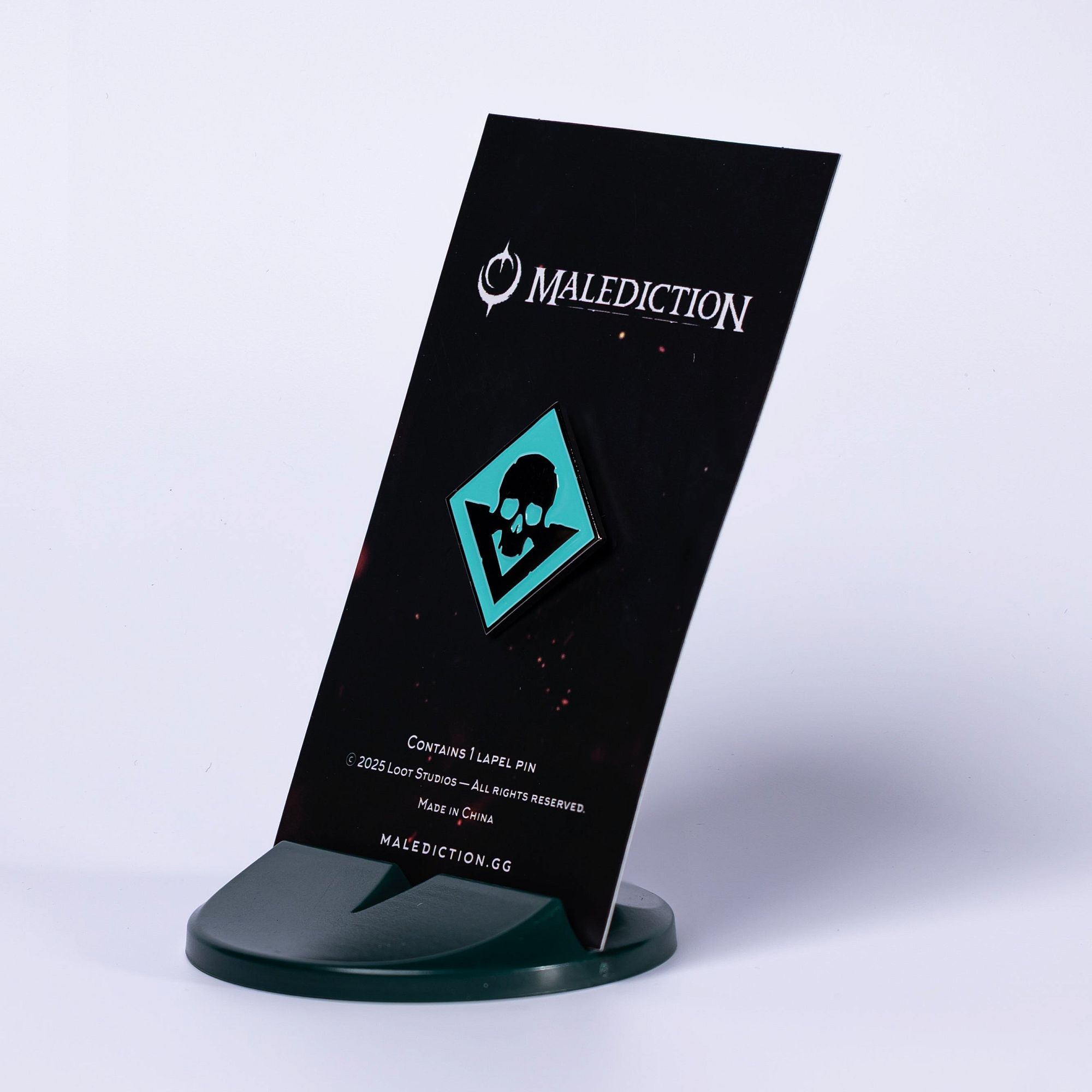Add a dark and stylish touch to your gear with the official Malediction pin.