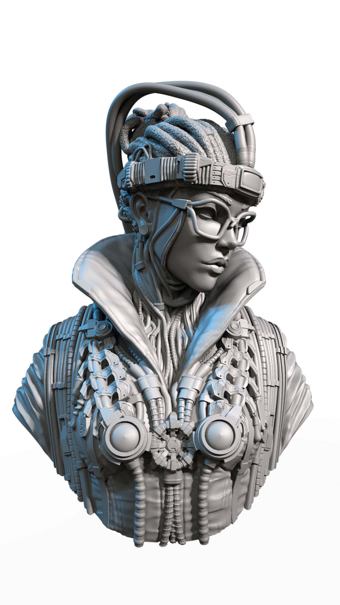 Thyra, once a young woman full of curiosity and drive, is now a synthesis of flesh and technology. Her body, more machine than human, is a testament to her commitment to her cause. Every inch of her cybernetically enhanced body tells a story of sacrifice and relentless pursuit of enlightenment. Her transformation embodies the paradox of Midguard - a world caught between the allure of progress and the tug of history.