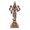 Matsya is depicted as a great fish or as a four-armed man with the tail of a fish. The upper half resembles Vishnu and wears the traditional ornaments and the 'kirita-makuta' (tall conical crown) as worn by Vishnu. He holds in two of his hands the Sudarshana chakra (discus) and a 'shankha' (conch), the weapons of Vishnu. The other two hands make the gestures of 'varadamudra', which grants boons to the devotee, and 'abhayamudra', which reassures the devotee of protection.