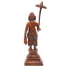 Vamana (IAST: Vāmana, lit. dwarf) also known as Vāmanadeva ('dwarf-god'), Trivikrama ('having three steps’) Originating in the Vedas, Vamana is most commonly associated with the legend of taking back the three worlds (collectively referred to as the Triloka) from the Asura-king Bali in three steps to give back to Indra the king of the Gods. Vamana is instantly recognizable with the short frame carrying a wooden umbrella. Sculptures may depict him as a deformed dwarf or as a brahmacharin (monastic student), dressed in the deerskin, loincloth, and sacred thread of the student with the students tufted hair.