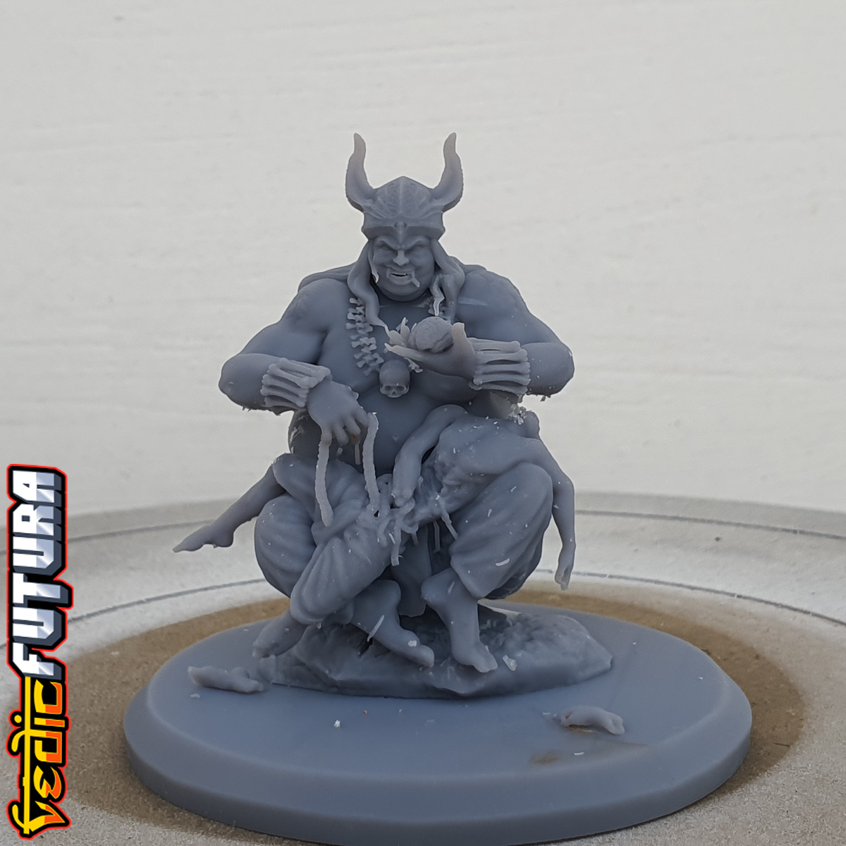 Bakāsura (IAST: Bakasura) is a rakshasa, a supernatural "man-eater" in the Hindu epic Mahabharata. He is also known by the names Baka or Vaka or kuaishwa. He was killed by Bhima. The demon lived near the city of Ekacakrā (sometimes called Cakranagarī) and forced the king to send him a large number of provisions every week, which he devoured along with the men who provided them. Bhima was eventually sent out to kill Bakāsura under the direction of his mother Kunti. According to legend, Bhima plucked out Bakasura's horns and killed him by crushing his chest by his own horns.
