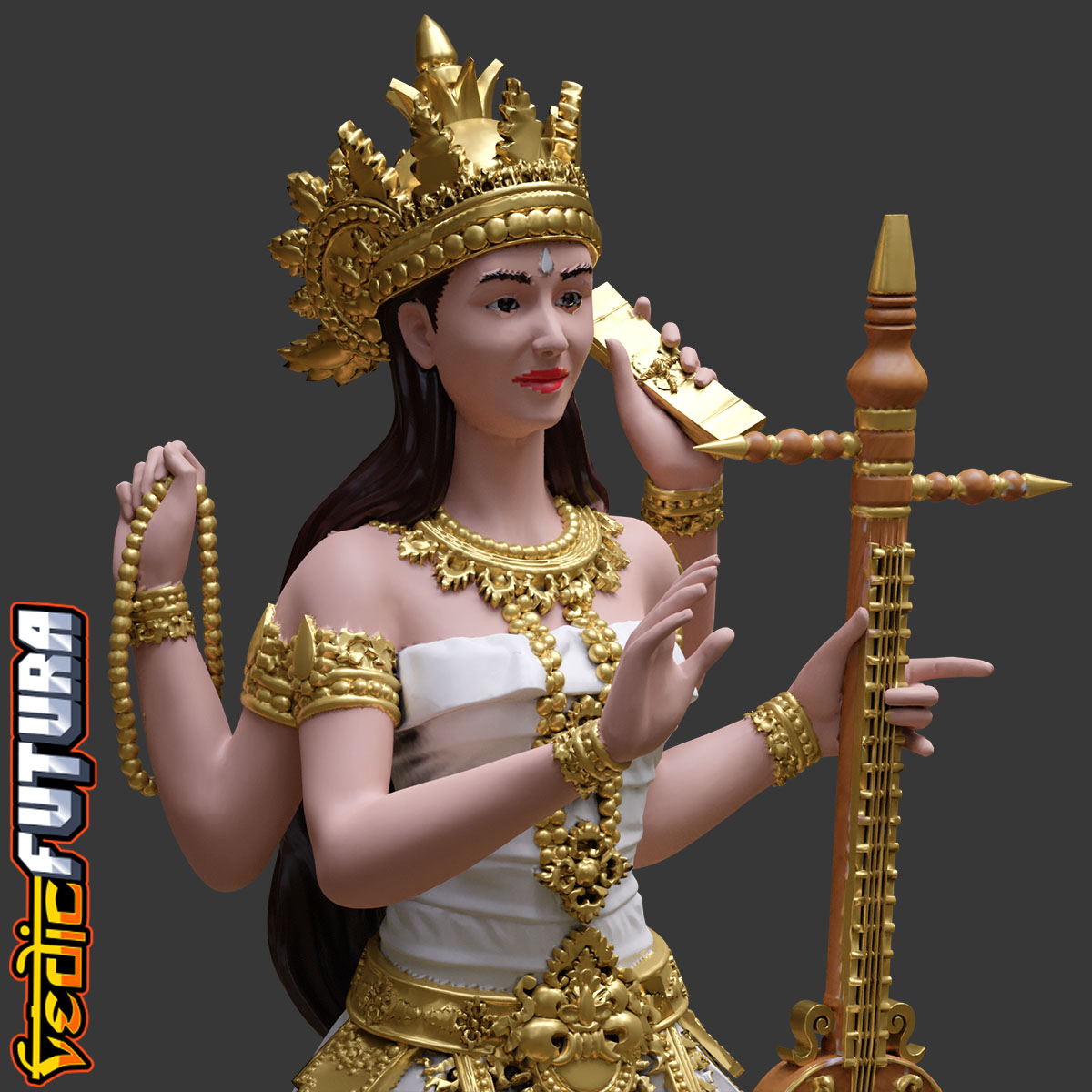 Saraswati is an important goddess in Balinese Hinduism. She shares the same attributes and iconography as Saraswati in Hindu literature of India – in both places, she is the goddess of knowledge, creative arts, wisdom, language, learning and purity. In Bali, she is celebrated on Saraswati day, one of the main festivals for Hindus in Indonesia. The day marks the close of 210 day year in the Pawukon calendar.