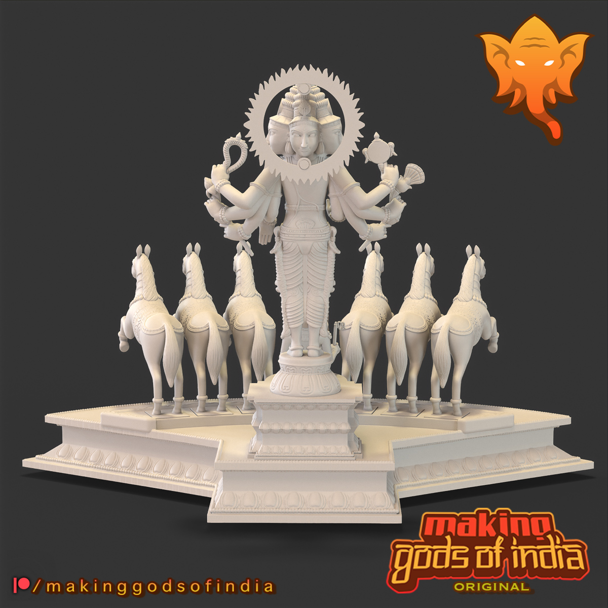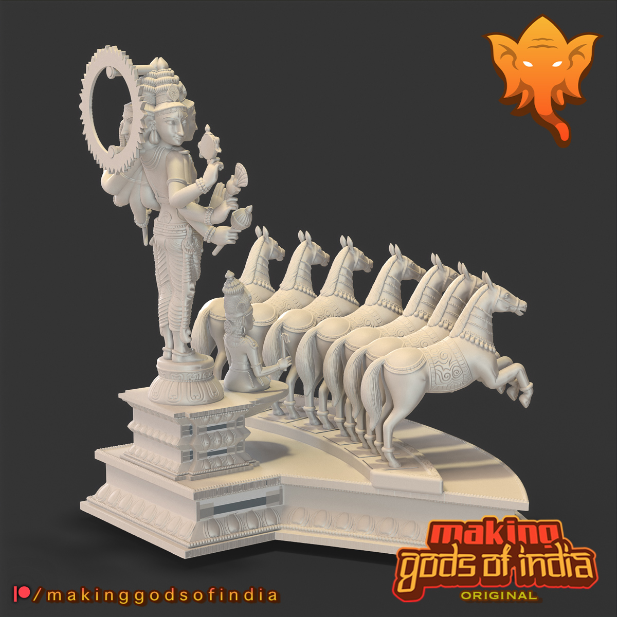 Surya - The Sun, With 7 Horses & His Charioteer Aruna