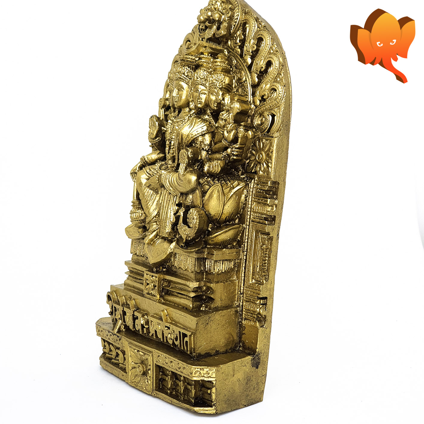 She is revealed in the form of a mantra, called the Gayatri Mantra. The last line of the mantra “Dhiyo-Yo-Nah-Prachodayaat” is inscribed in Sanskrit at the base of the figurine. It roughly translates to ‘O God! Deploy our intellect on the right path’