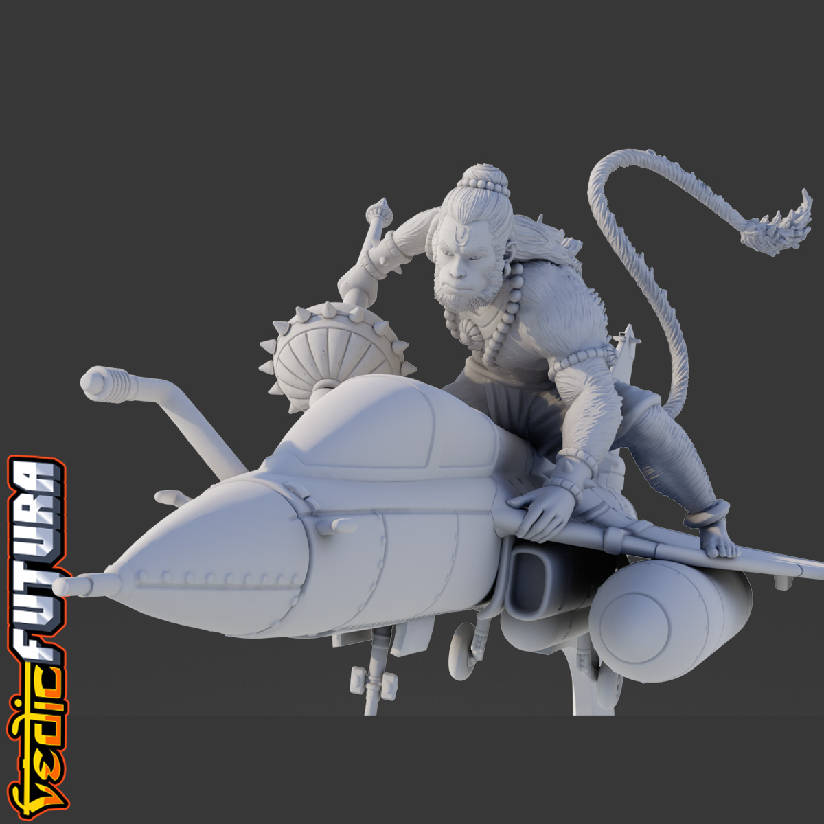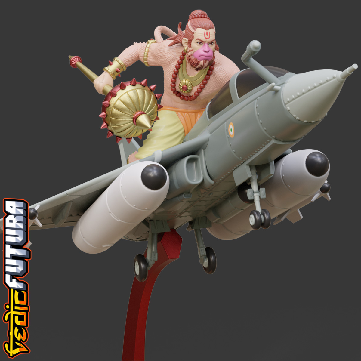 The fighter jet, an emblem of precision, speed, and power, serves as a fitting counterpart to Hanuman's mythic persona. Renowned for feats of aerial prowess and his role as the ultimate agent of service and protection.