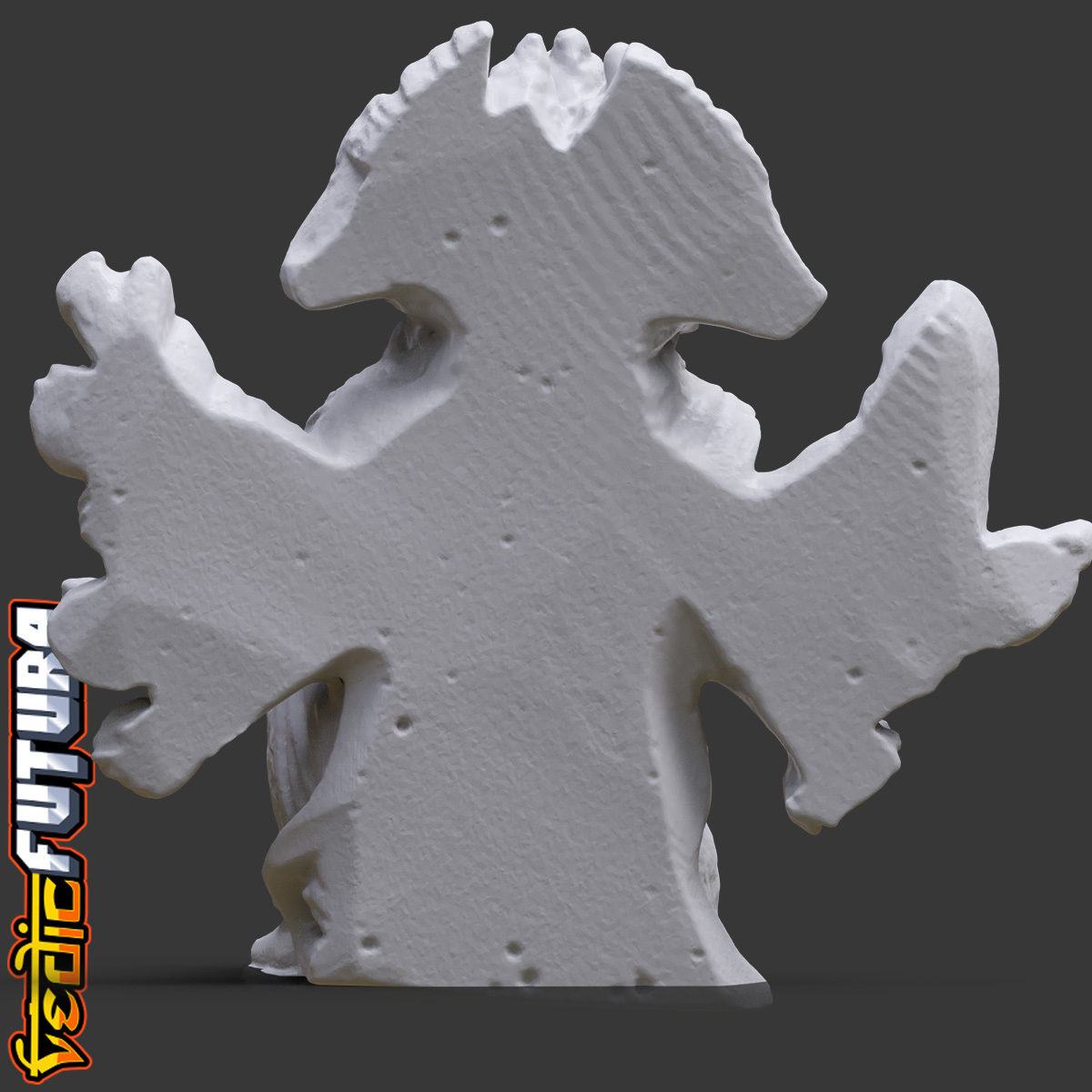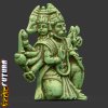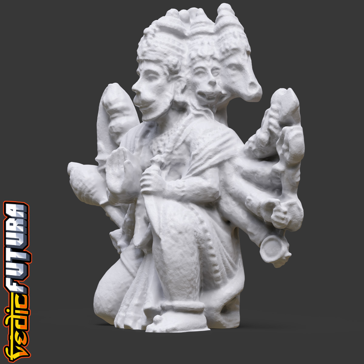Panchamukhi Hanuman, a five-faced form of the revered vanara deity, depicted in a rare and striking kneeling pose. Each of Hanuman’s five heads—Hanuman (east), Narasimha (south), Garuda (west), Varaha (north), and Hayagriva (above)—symbolizes a different divine aspect, invoked for protection against evil, mastery over senses, and spiritual awakening.