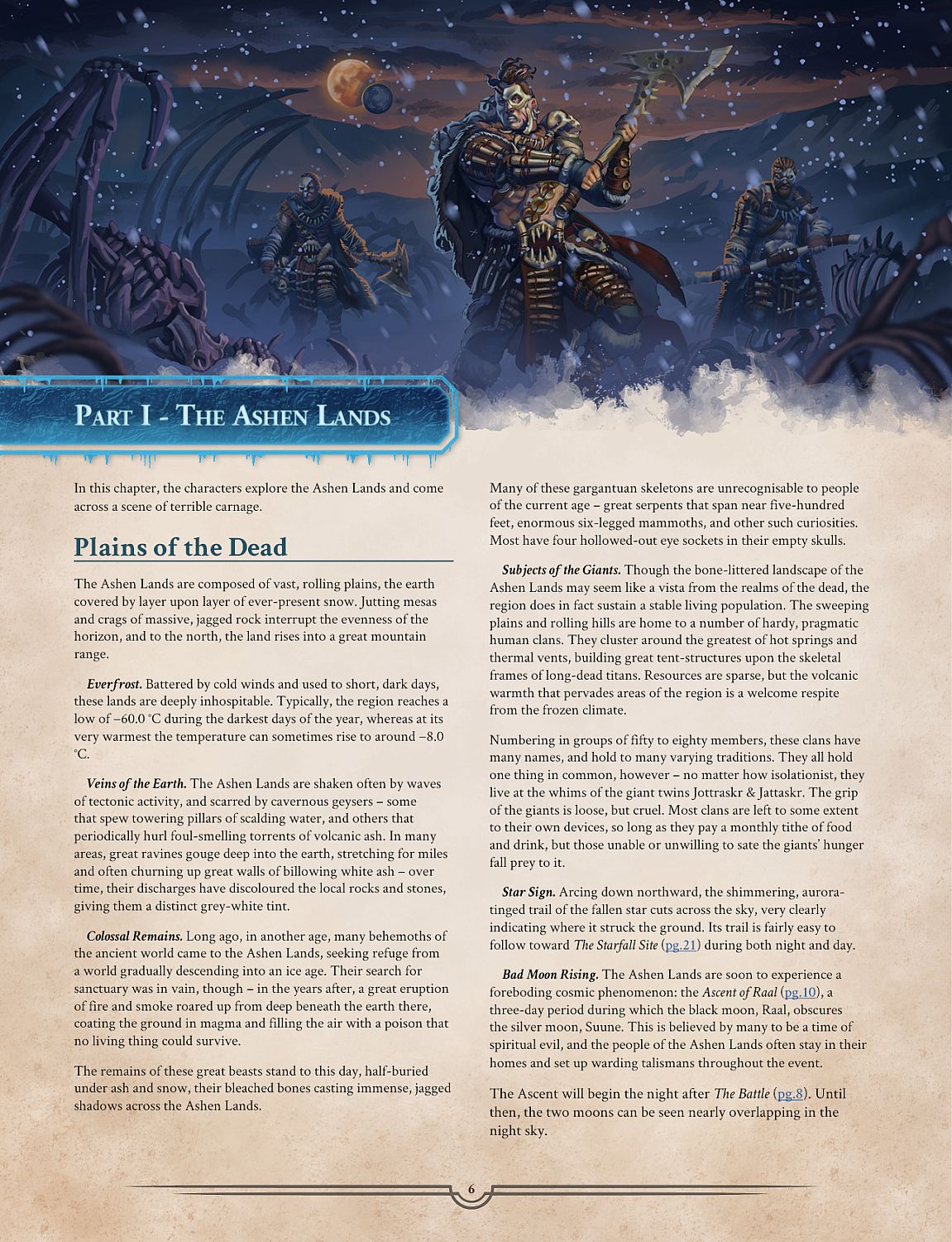 "A star has fallen to the earth, bringing with it chaos and terror. The frost giants of the Hollow Mountain plan to use its power in a foul ritual, giving them the strength to spread their tyranny far and wide. To stop them, the barbarian clans of the Ashen Lands must be united, and a desperate assault must be made upon the Lords of the Hollow Mountain…"