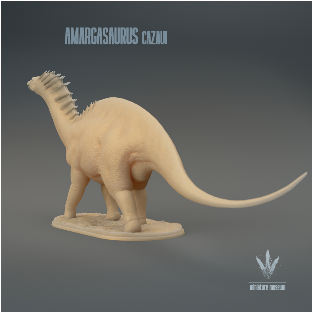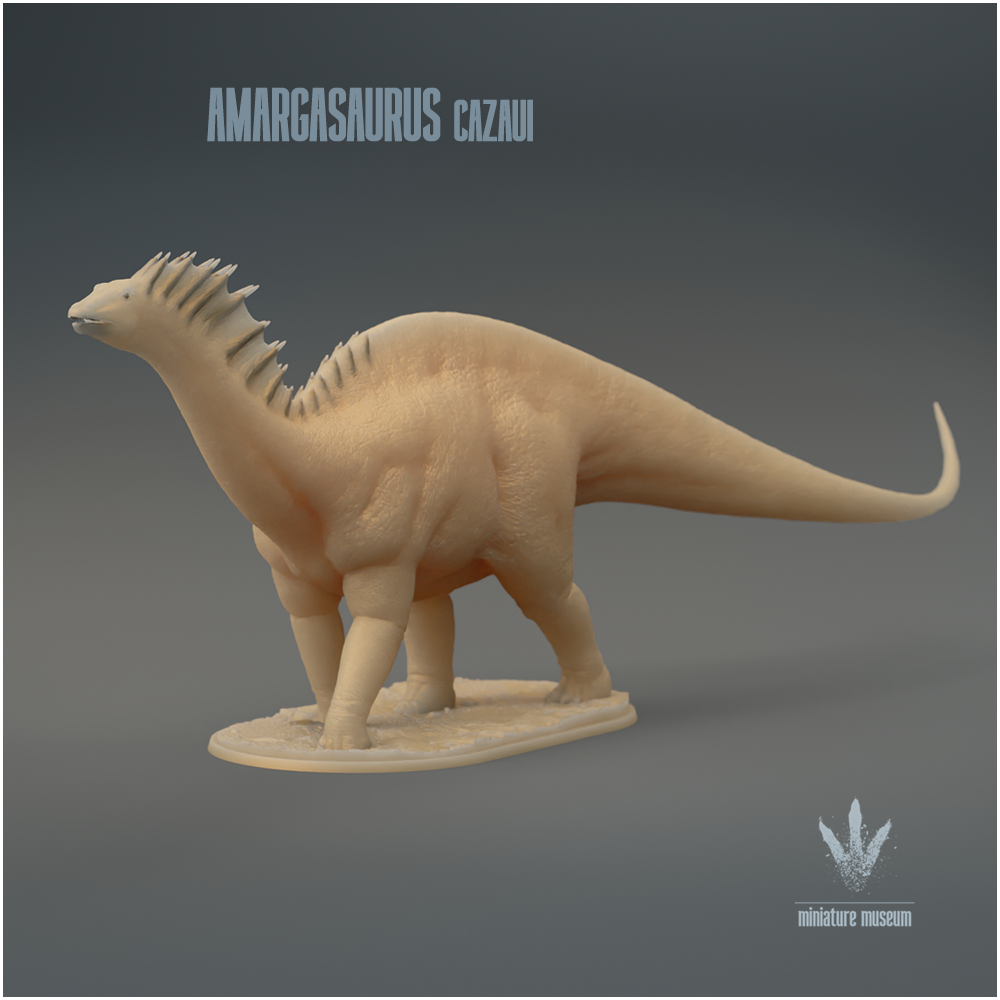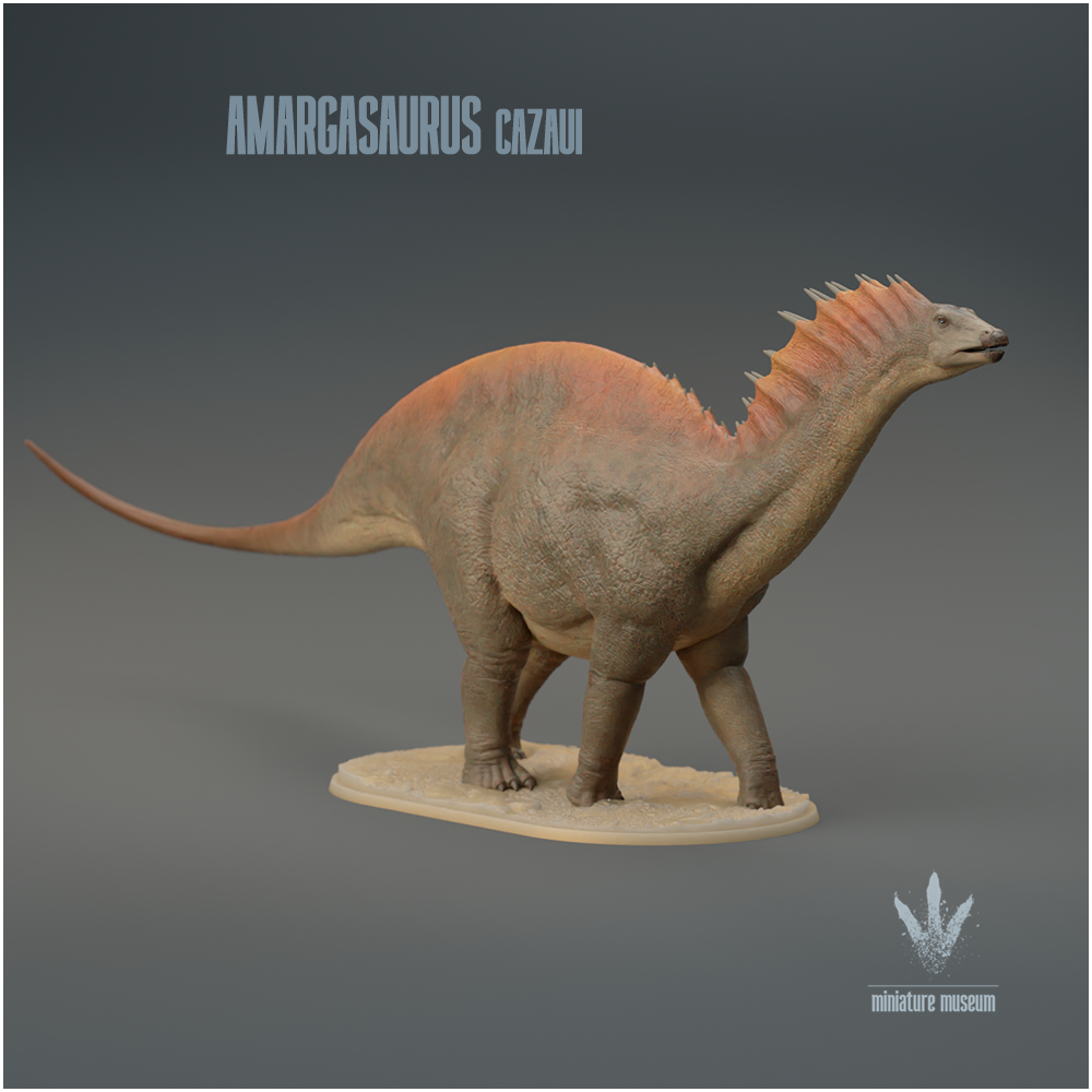 It measured around 9–10 meters (30–33 feet) long and weighed approximately 2.5 metric tons. What set Amargasaurus apart were its two parallel rows of elongated neural spines along its neck and back, which may have supported a sail or served as defensive structures.