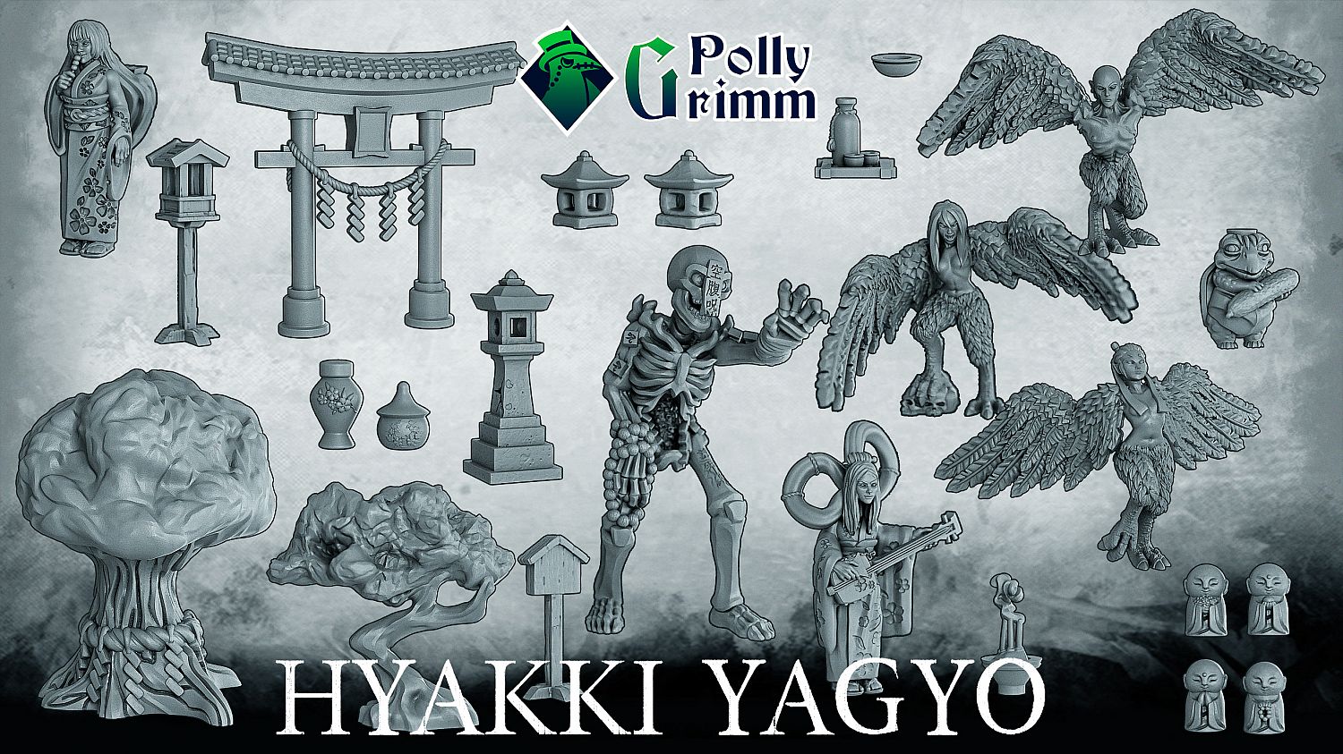 Night Parade Of One Hundred Demons. Japanese Folklore Set. . Gashadokuro Giant Skeleton