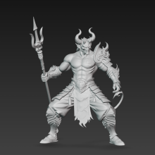 A 3D-printable fantasy figurine featuring a bull-headed demon wielding an ornate trident, perfect for Dungeons & Dragons sessions, tabletop gaming, or display collections. Standing at 56 mm tall, this detailed miniature showcases intricate features like horns, armor, and musculature, making it ideal for painting enthusiasts and collectors.