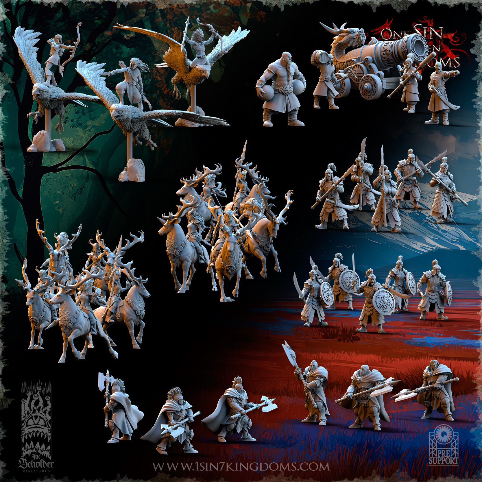 28mm modular elf kings guard. 2 head options and 6 bodies. Arm options for swords, spears and shields. Pre-supported and unsupported included.