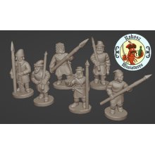 Dressed in simple peasant dress these men are armed with common snaphance moscovite muskets that were popular in the first half of XVII century. There were cheap and easy to produce but were heavy, unreliable and had weak bullet.