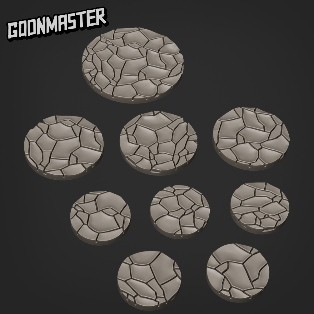 Round and Oval bases with a cracked earth texture that also works well as cracked ice. A wide range of sizes are available to suit any model in your armies.