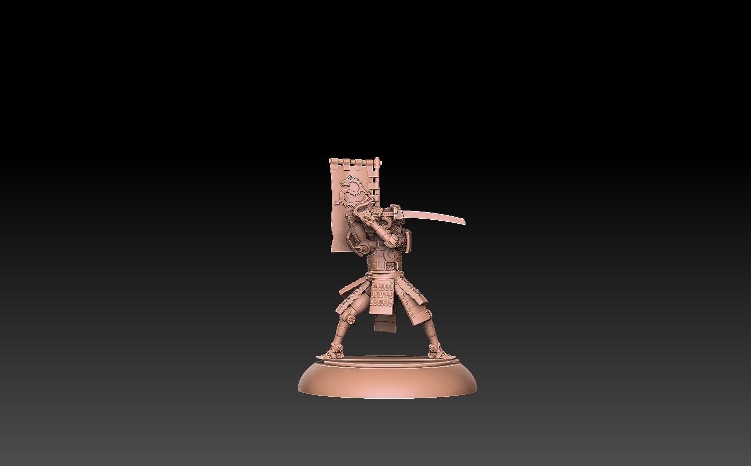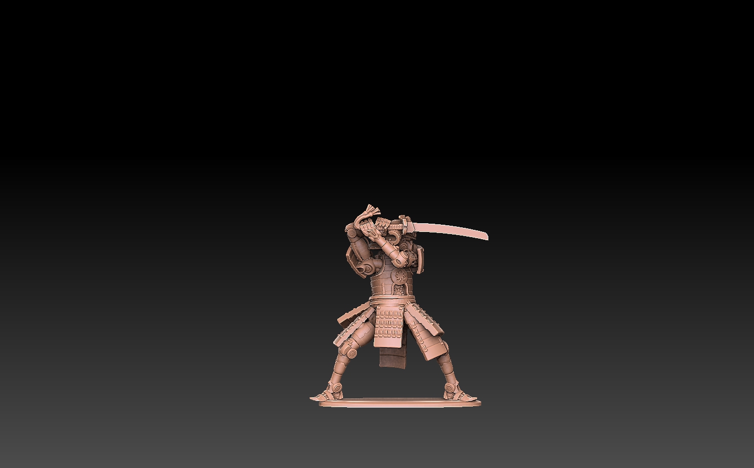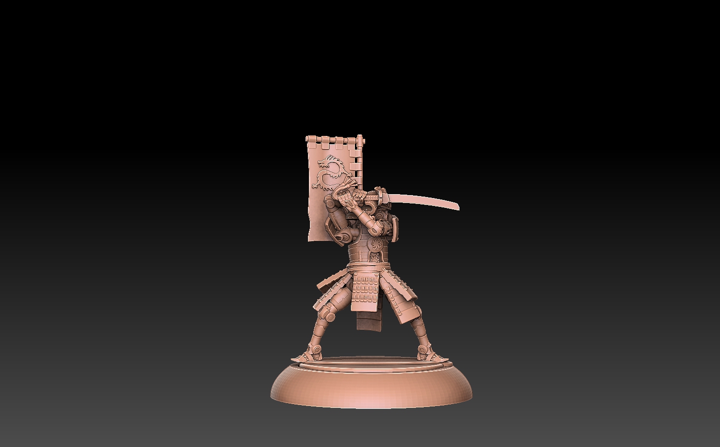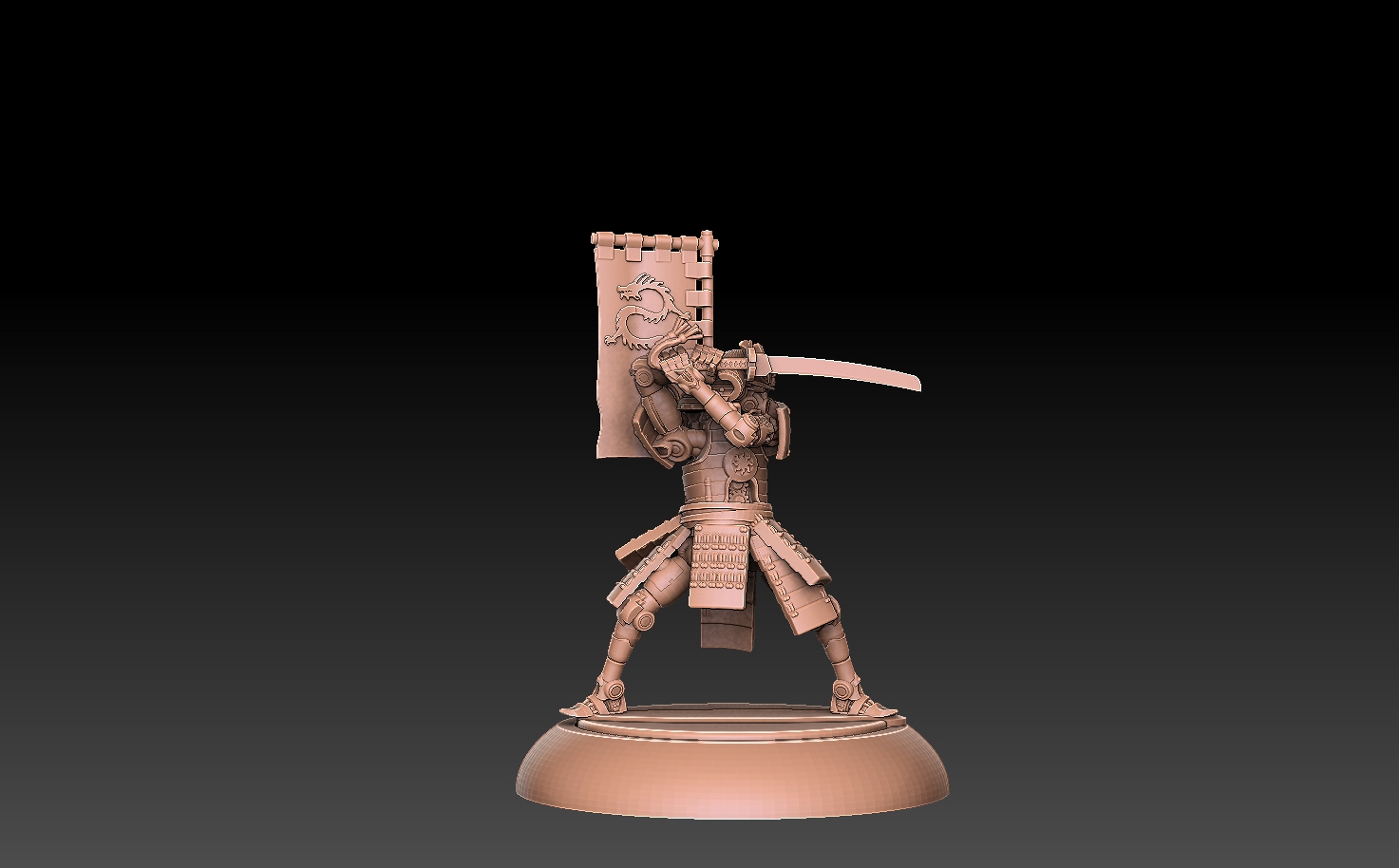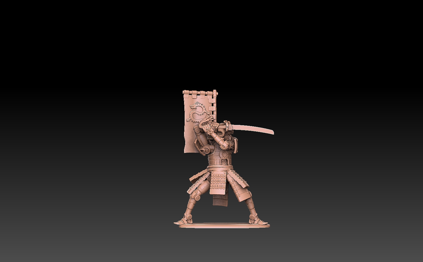 Retro-futuristic robot samurai. Suitable for 28mm scale tabletop games. Nuff said.
