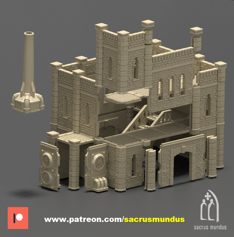 Bundle of STL models of Modular Factory, Barrels and Containers for your favorite science fiction wargames. Download the STL files and print them with your home 3d printer at the scale you prefer. Awesome terrain for almost every miniature game. All elements come in different parts to better fit your printer and make the interior accesible to place your miniatures during the game.