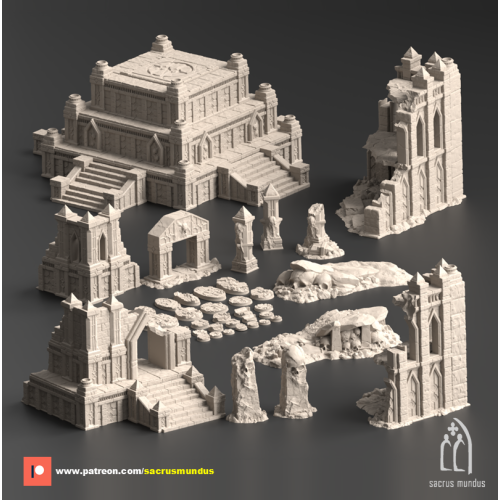 -Ashkaris Temple Ruins: 10 STL -- Optimized for FDM printers. No supports required.