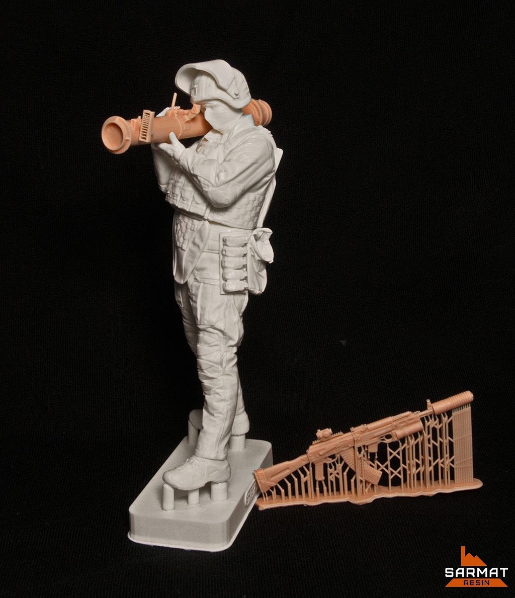 Фигура изображает бойца спецподразделений в экспериментальном несерийном штурмовом бронекостюме "Велит/Легионер". В 2010-х в различных вариациях проходил испытания, серийно не производился. Отдельные элементы бронекостюма изредка встречаются на фото у сотрудников ЦСН.