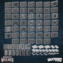 Brewhouse wall sections, barrels and kegs from our DarkMyth Village Set, perfect for inns and taverns.
