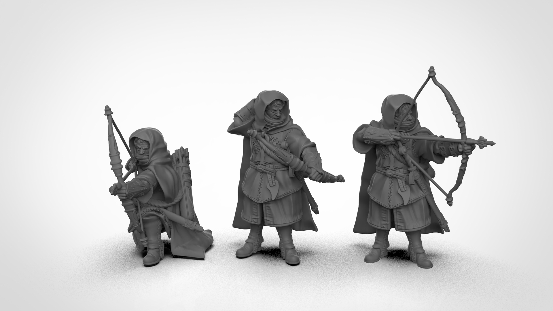 This kit allows you to print 6 different human rangers. They are a bow and spear. The files come with supported & unsupported version.