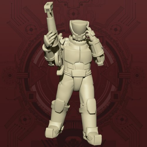 Armed with the latest power armor and particle shotgun, the brutal and efficient Cinsade Brawler is the main force of the Mercy's Reach Void Warriors.