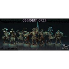Made at a 32mm Scale, this pack of obsidian orcs includes;