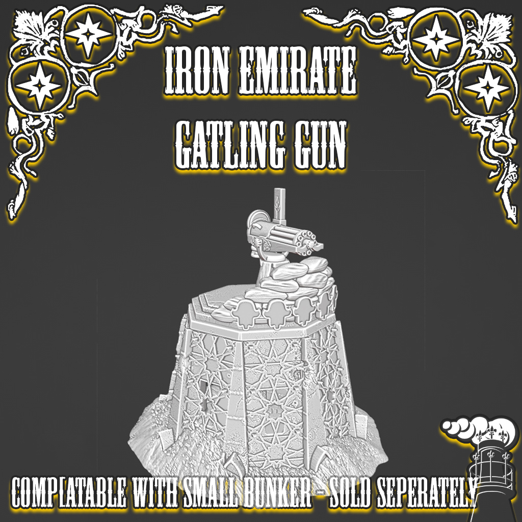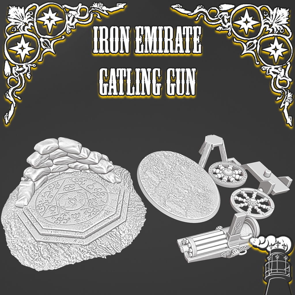 Creating a small gatling gun as an implaced maching gun replacement. This includes both a wheeled and mounted option, including multiple base options.