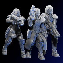 Squad of Troops designed for the WARSURGE Tabletop Game. 30-32mm scale, presupported STL. There are 14 different troopers with five different bases.