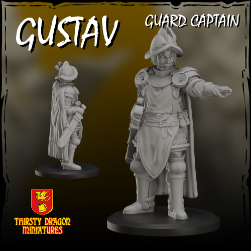 Gustav, Captain of the Garrison, is an old veteran who strikes fear into his men. He's been through it all, riots, invasions, disasters and survived them all. When he commands, you better follow orders, for your own good.