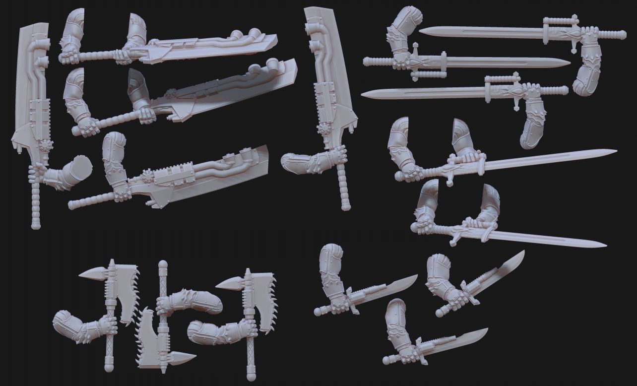 This kit contains a multitude of (84!) melee and ranged weapons made for the Tempest Legion MK3 heavy infantry models.