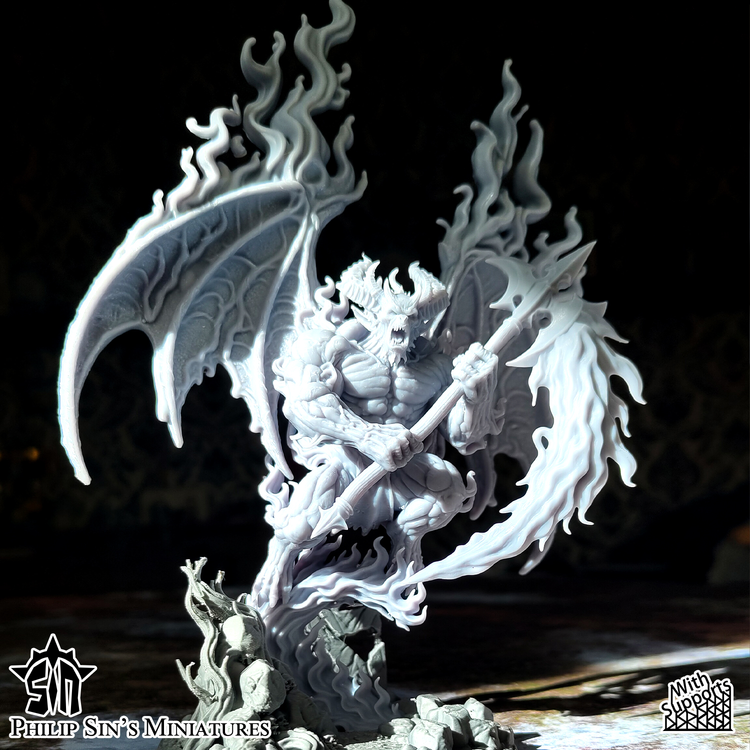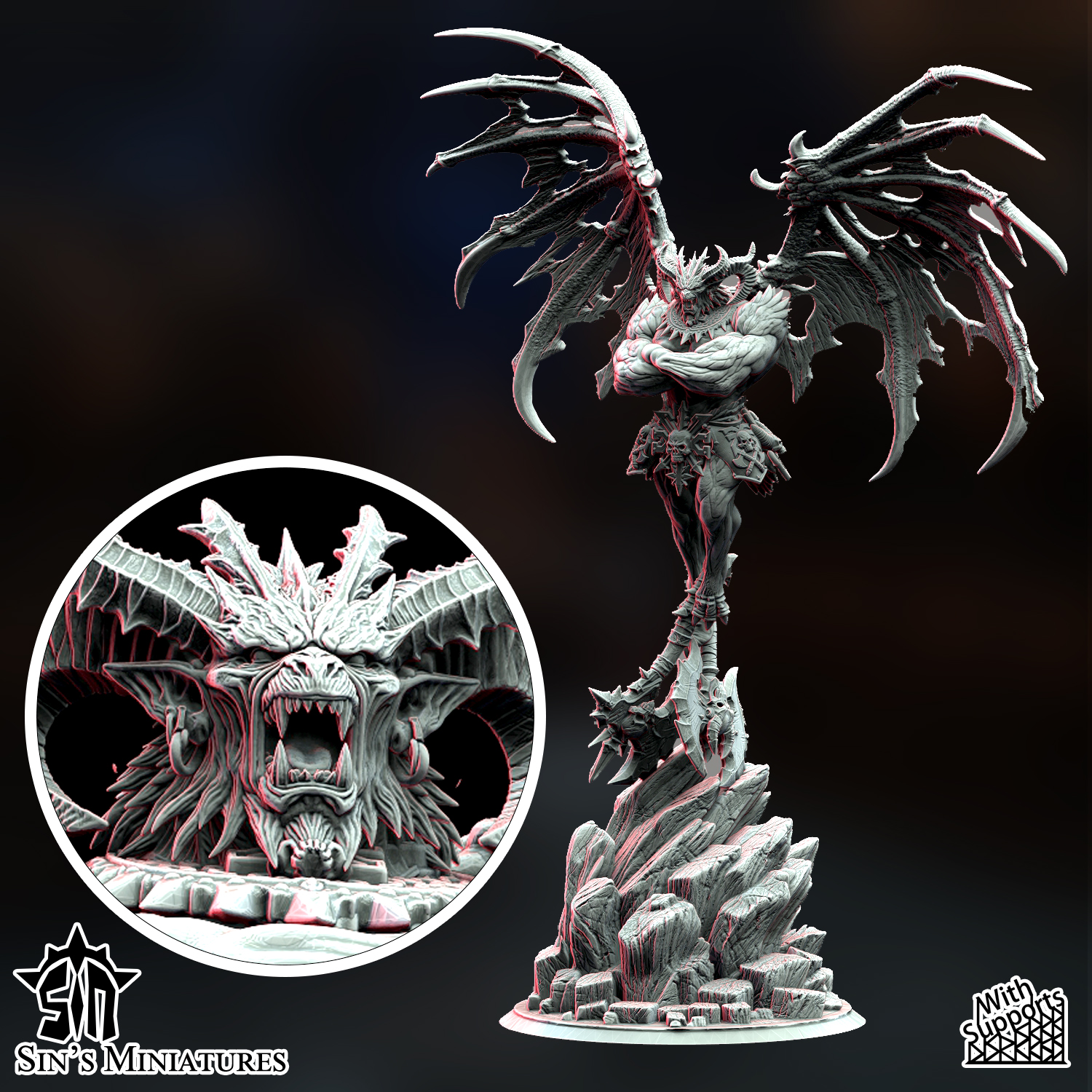 This Greater Daemon of War stands 134mm tall in 32mm scale. (feet to head, wings not counted)