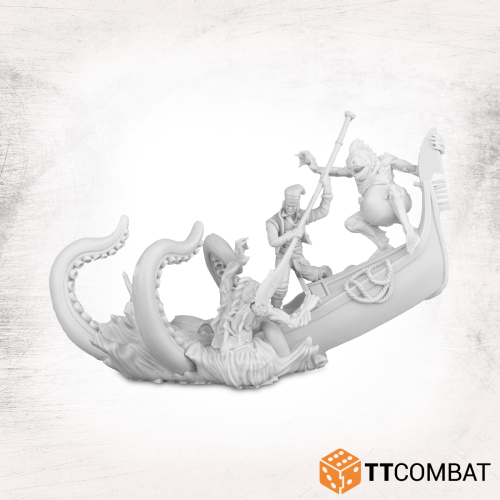 To celebrate Carnevale's launch on Kickstarter, we created this frantic diorama! A lone Gondolier fighting off two Ugdru and who knows what else beneath the Venetian lagoon. He is fighting for his life, and given the hungry look of those Rashaar, he'll be lucky to keep it before the encounter is through!