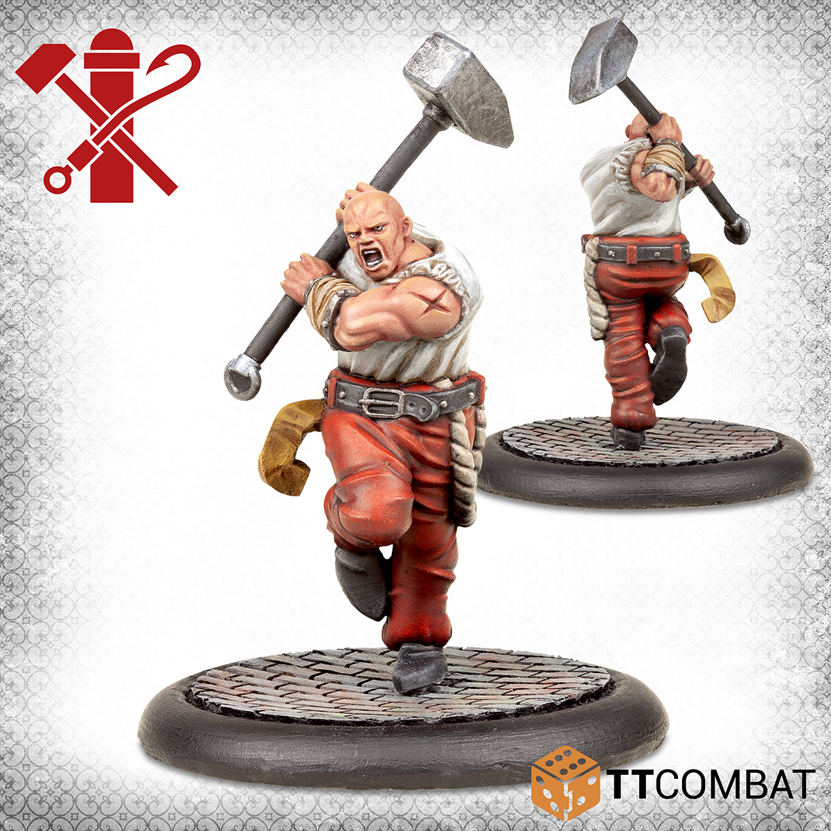 The Dockworkers are the Guild’s answer to water combat. They’re tough, defensive, and not too bad in the canals either. This complete gang is led by a Harbourmaster who will protect her crew at all costs, where as the Fisherman will hunt large creatures in the water. A Shipwright provides heavy hitting power, smashing people just like he smashes rivets on his boats. Finally two Mariners will give Guild players some much needed support while on the water.