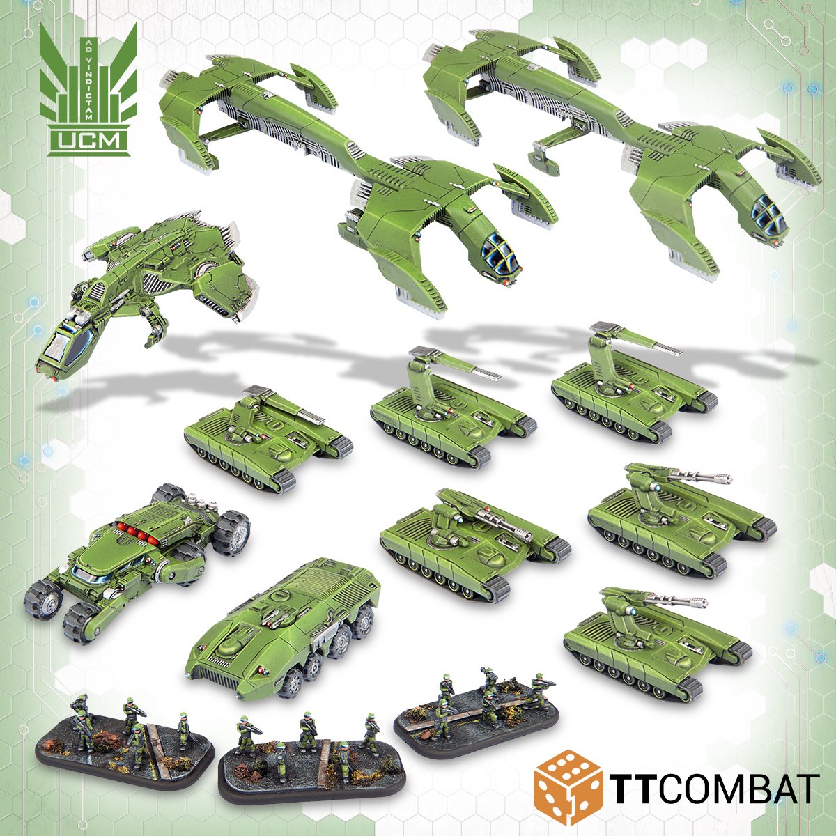 In this militaristic state, the United Colonies of Mankind was born. Gone were the lavish ways of old Earth, replaced by frugality and utilitarianism. Now, almost two centuries later, the UCM have arrived at Earth: the focal point of their Reconquest. With militaristic, utalitarian designs, their armies favour mass production and conservation of resources, keeping vehicles small and practical, though no less deadly.