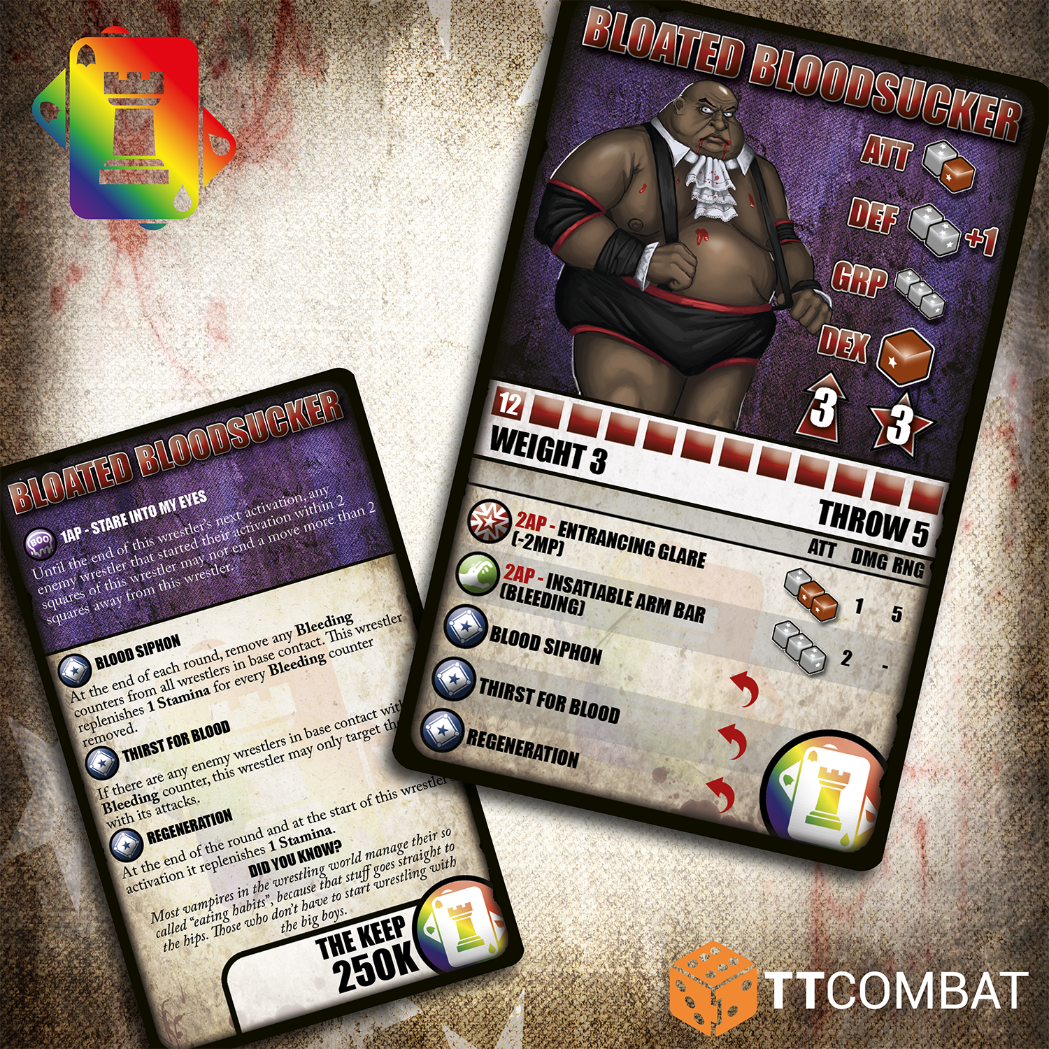 The darkest shadows of the Keep have revealed a new generation of Vampiric wrestling talent! Combining seductive glances and adorable figures like the Pigmy Manbat, the Sanguine Smackdown are rapidly becoming fan favourites.