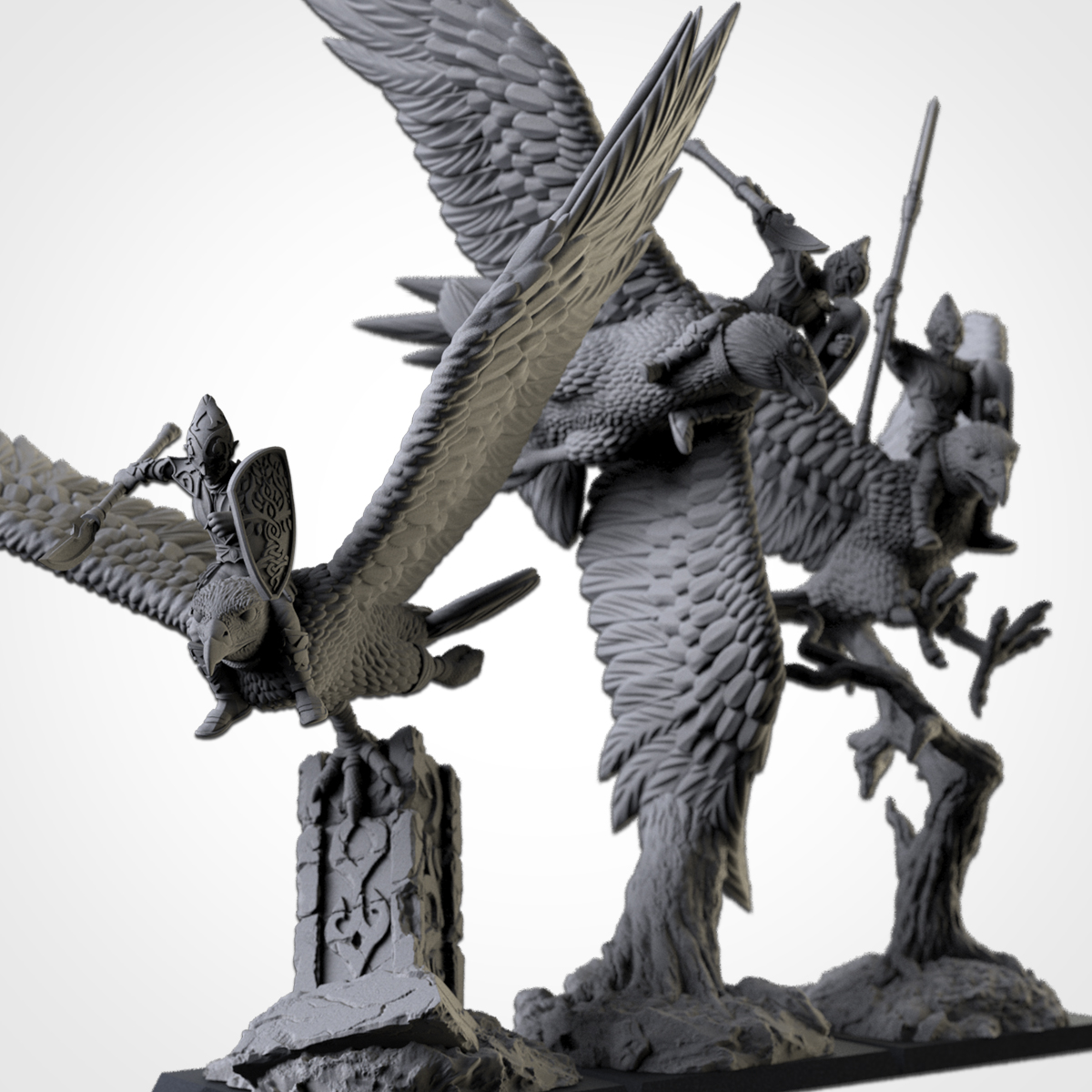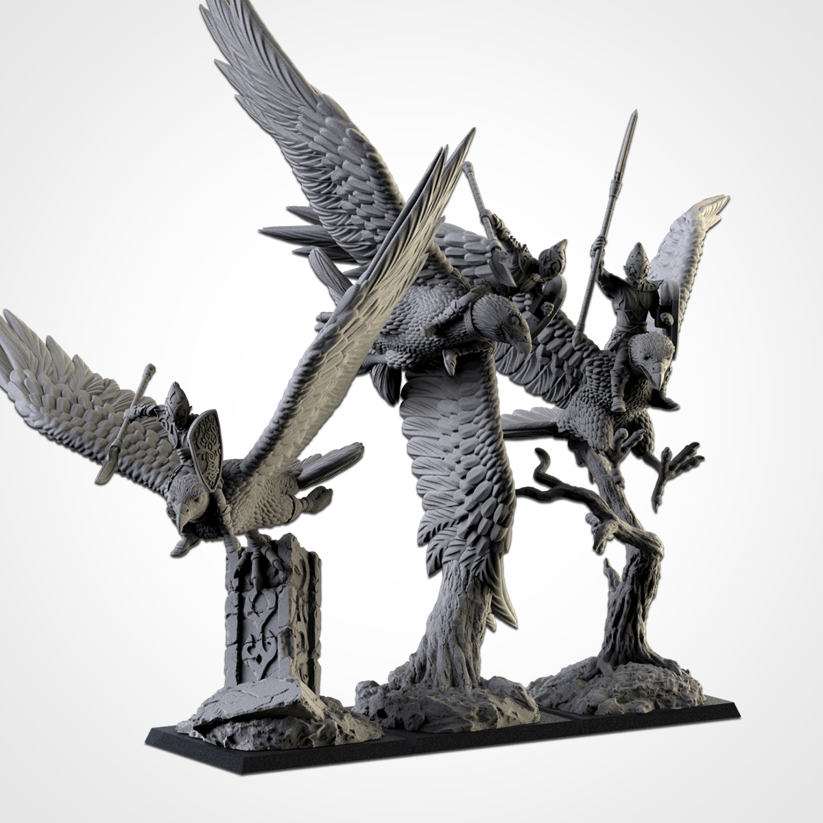 With this pack you can mount 3 Hawk Riders / Kestrel Knights miniatures.