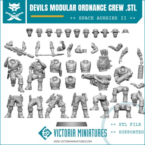 Modular Ordnance Crew for Space Aussies, with rolled sleeve arms.