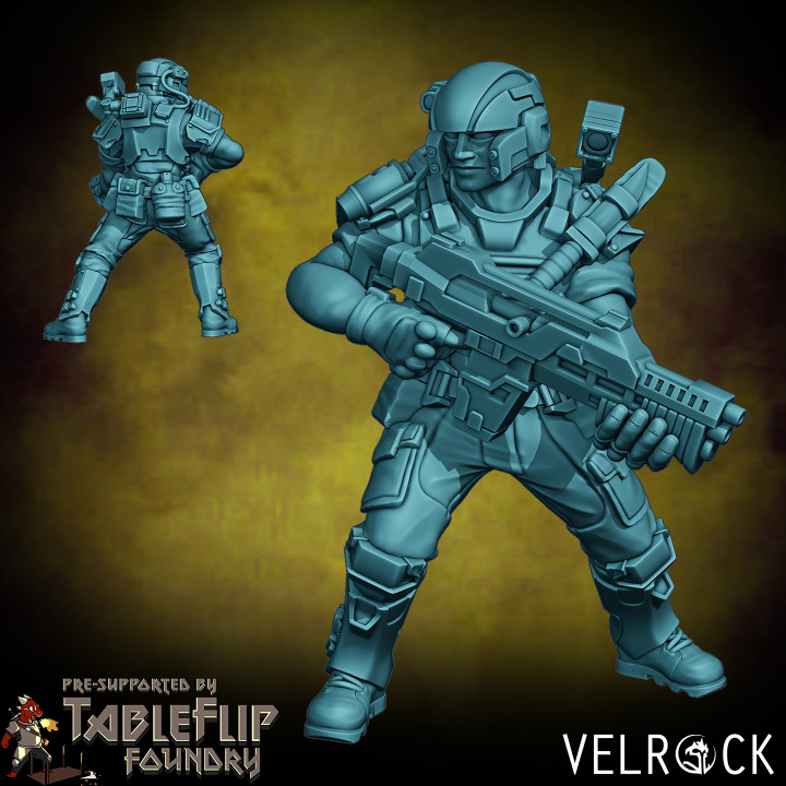 The Colonial Marine Squad was initially released as part of my Tribes rewards here on Myminifactory. Every month I release new sets of miniatures for my Tribe members at a big discounted price. The set includes 6 marines. This purchase includes only 1 marine.