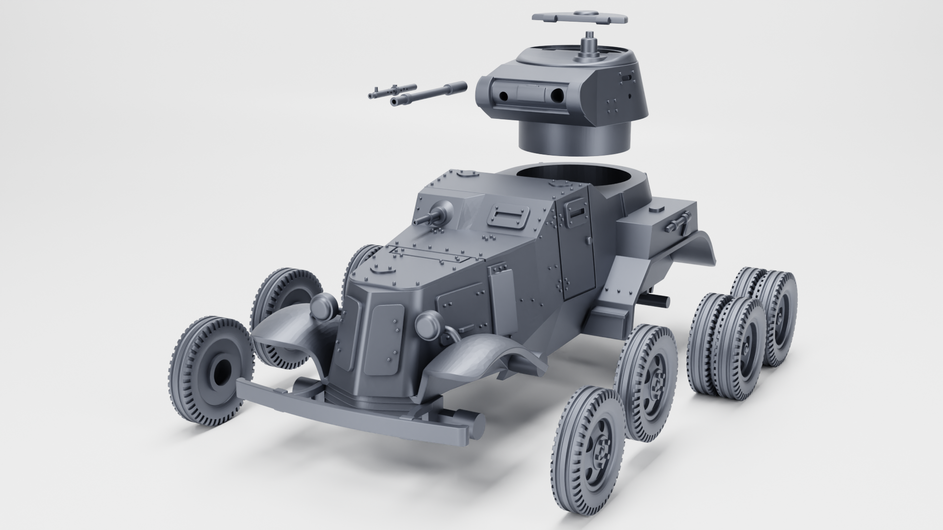 The base model is 28mm scale (1:56). Successful resize to other scales.