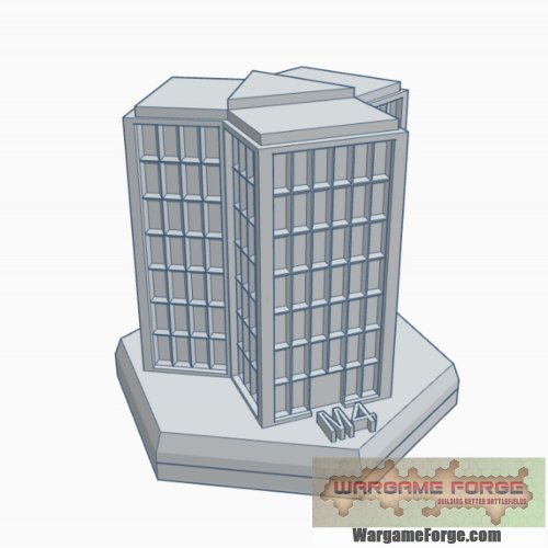 This is the STL file for a hex map scale urban terrain file. The file can be scaled up or down to suit your own game yourself using your slicing program. The default hex tile base is the same dimensions as the FASA and Catalyst Games hex battle maps for Battletech.
